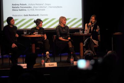 Am 13.11.2018 fand in Chemnitz unsere Podiumsdiskussion zu "Kulturaktivismus für offene Städte in der Ukraine" statt. Unsere Gäste junge Kulturarbeit im Kontext des gesellschaftlichen Wandels in der Ukraine. Unsere Gäste Natalia Yeryomenko aus Chernivtsi/Berlin, Andrey Palash, Kulturmanager aus Dnirpo, und Olena Sablina, zivilgesellschaftliche Aktivistin aus Pervomaisk, sprachen mit der Chemnitzer Theatermacherin Gabi Reinhardt über junge Kulturarbeit im Kontext des gesellschaftlichen Wandels in der Ukraine.