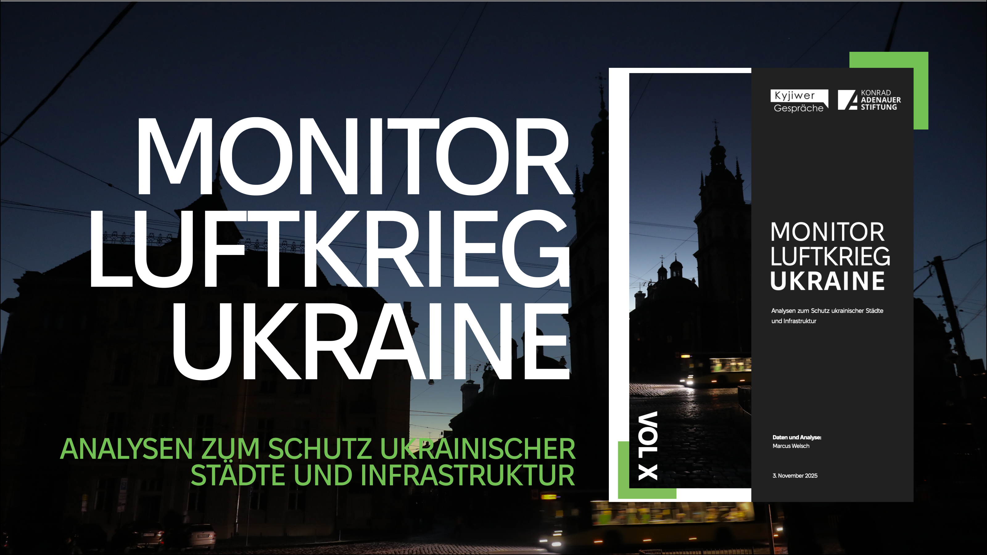 Der monatlich erscheinende Newsletter „Monitor Luftkrieg Ukraine – Analysen zum Schutz ukrainischer Städte und Infrastruktur“ stellt Analysen der aktuellen Angriffswellen bereit und zeigt Trends auf, die Einschätzungen zur weiteren militärischen Entwicklung und zu den militärischen Kapazitäten Russlands zulassen.