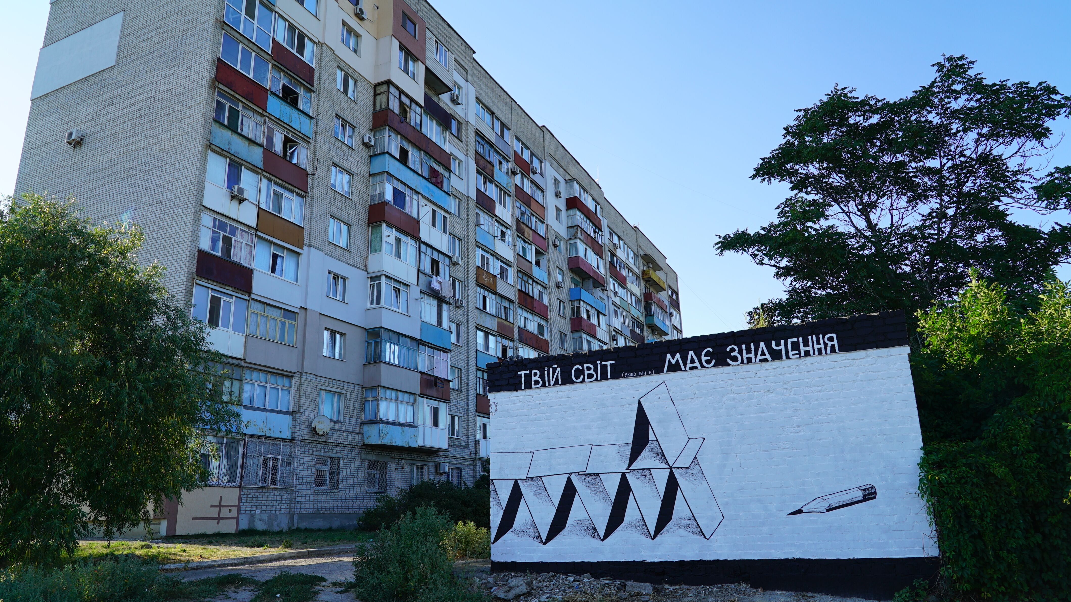 Der berühmte Streetart-Künstler Gamlet Zinkivskyi malt nur in sieben Tagen acht Kunstobjekte in Berdjansk. Sie sollen zeigen, dass die urbanen Räume neu gedacht werden können.