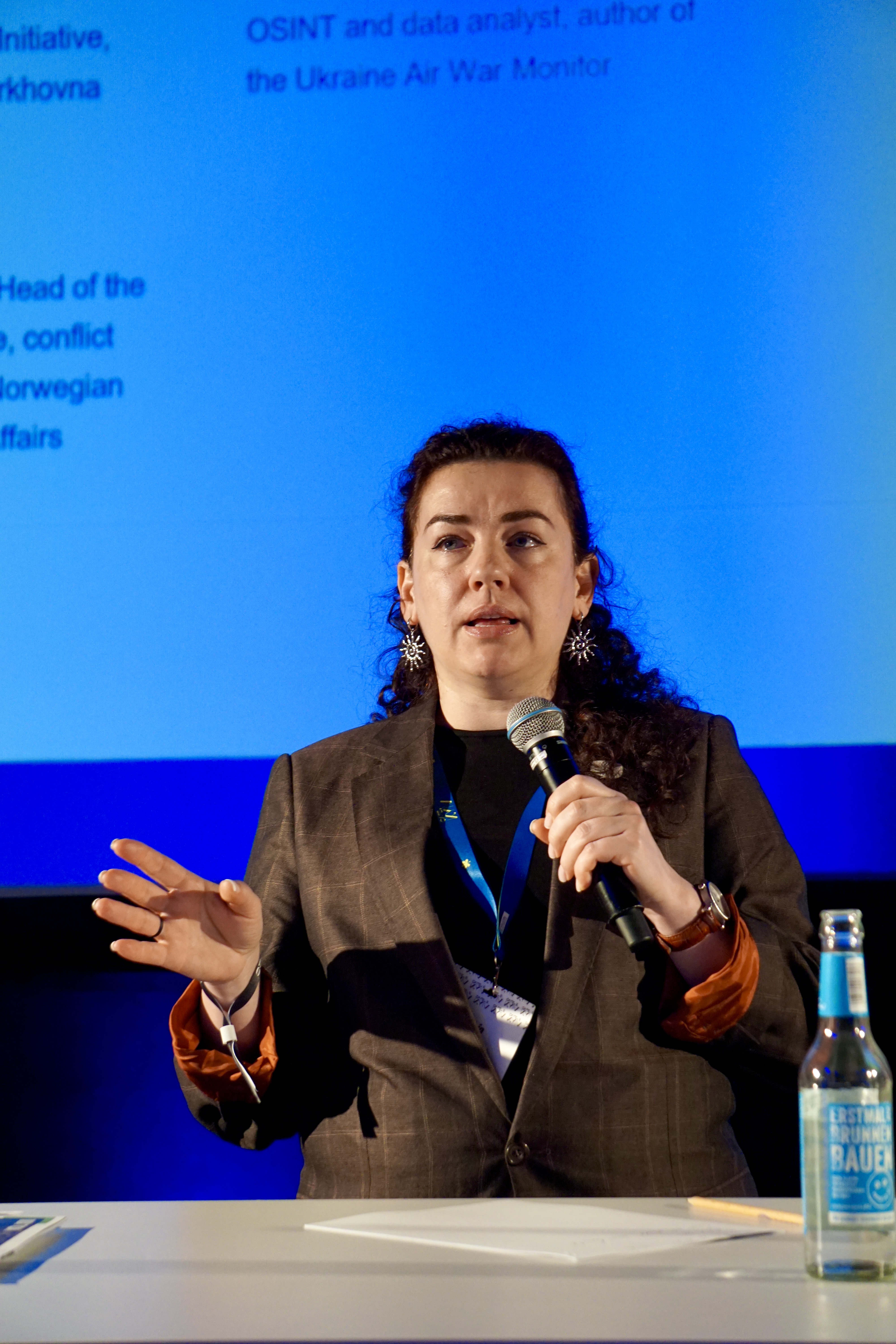 Four years into the war, Europe still lacks a coherent strategy for supporting Ukraine, and this gap is now measurably costly. That was the central finding of this panel discussion, which brought together Lesia Orobets, leader of the Sky Shield Initiative and former Ukrainian MP, and Dr. John Karlsrud, Research Professor at the Norwegian Institute of International Affairs (NUPI), moderated by Marcus Welsch, OSINT and data analyst, and author of the Ukraine Air War Monitor.