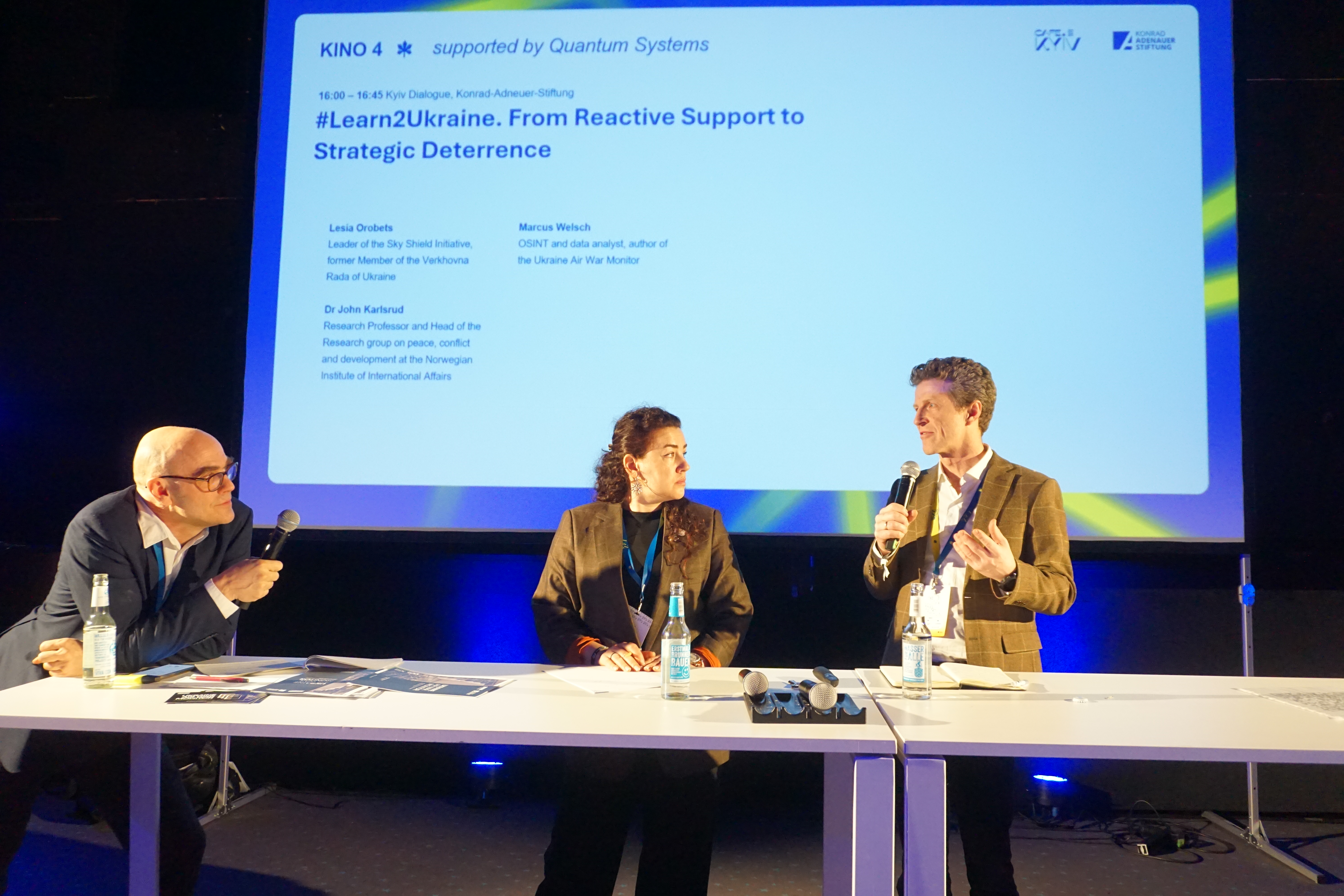 On 23 February 2026, Kyiv Dialogue and the Konrad Adenauer Foundation Kyiv Office hosted the session “Learn2Ukraine – From Reactive Support to Strategic Deterrence” at Cafe Kyiv in Berlin.